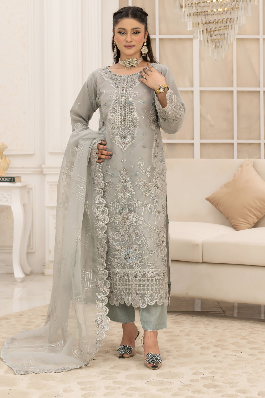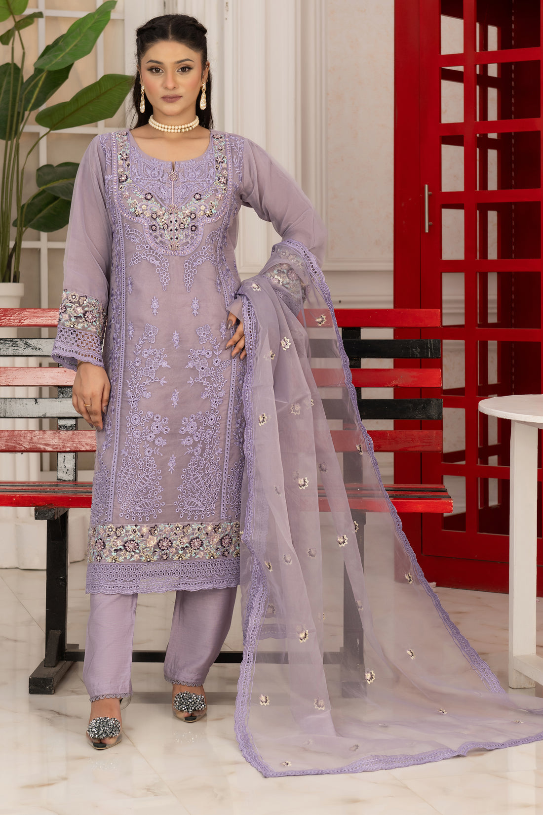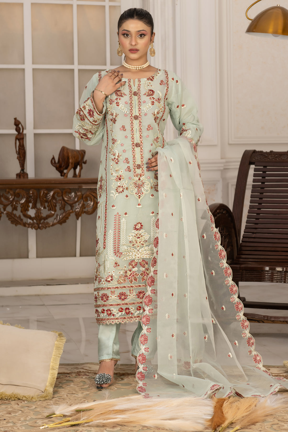 Organza front embroidered and embellished with pearls and cut workOrganza sleeves embroideredOrganza dupatta with 2...
