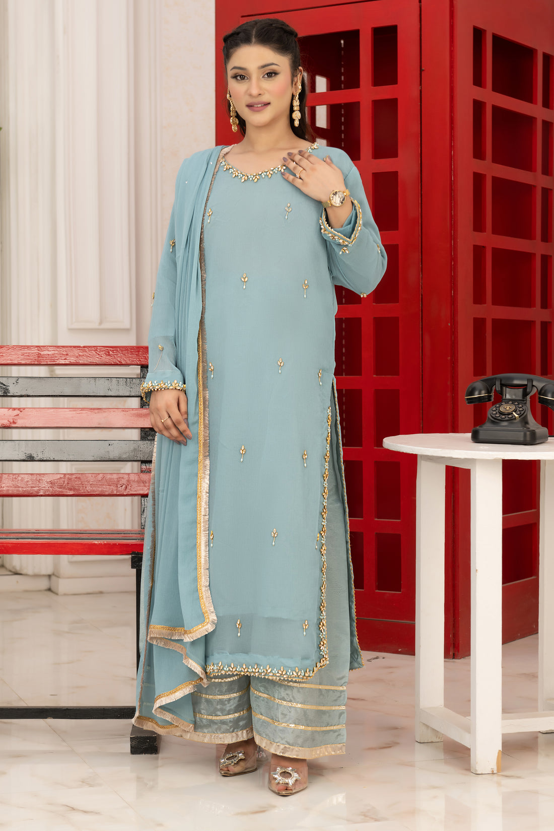 Chiffon Shirt With Hand Made Zardozi workChiffon Sleeves With Zardozi WorkChiffon Dupatta Having Four side...