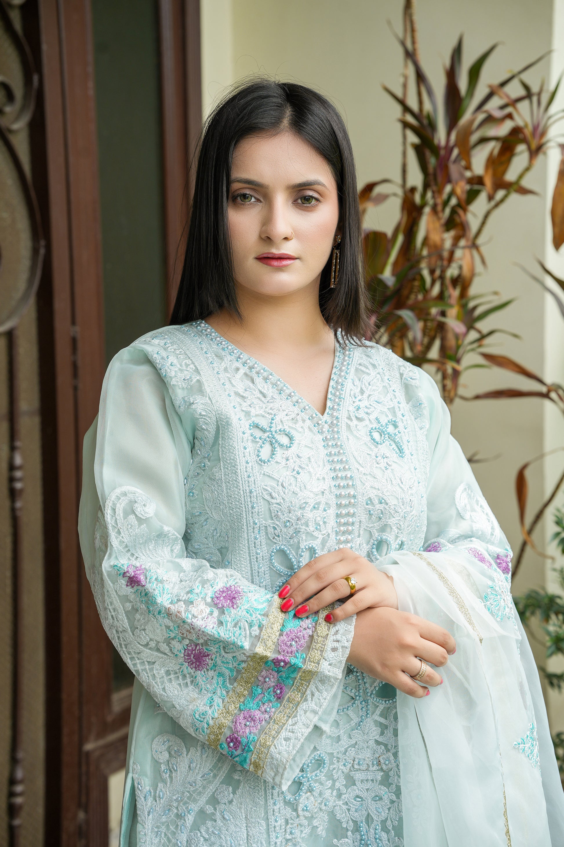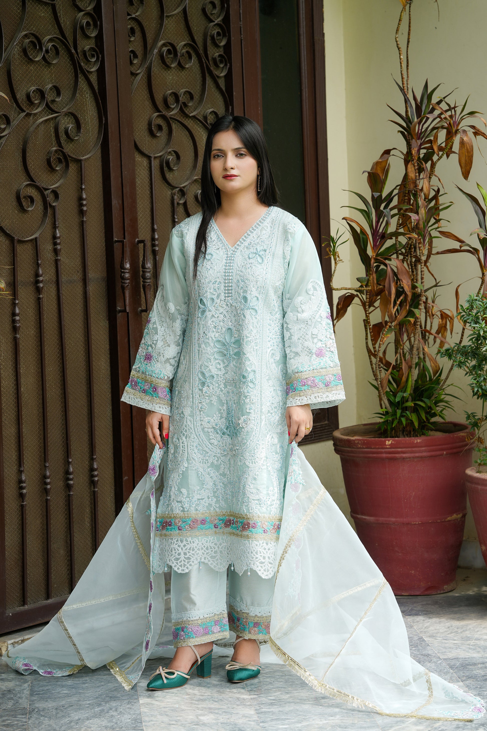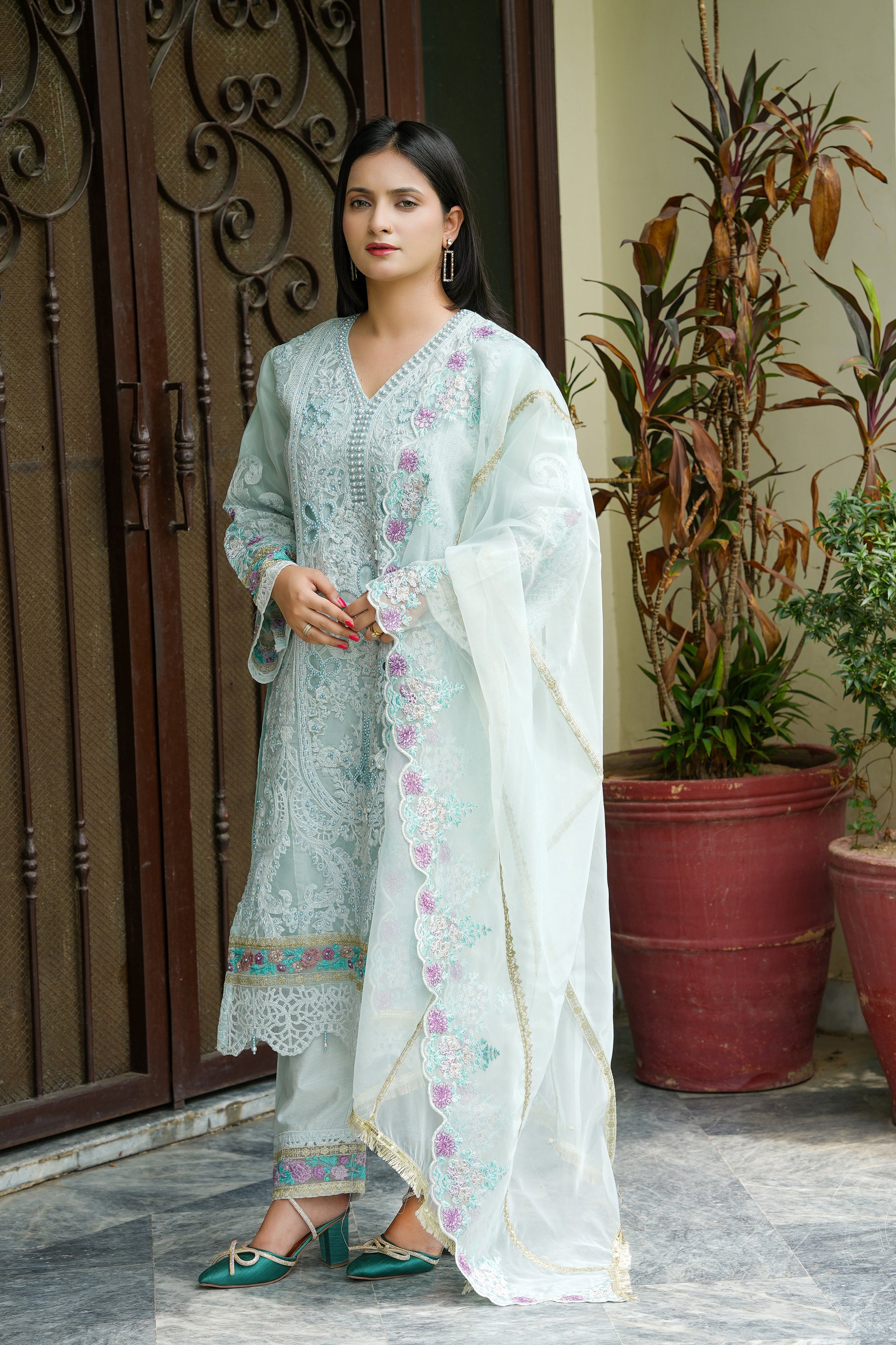 Organza dupatta with 2 sides embroidered, enhancing with lace