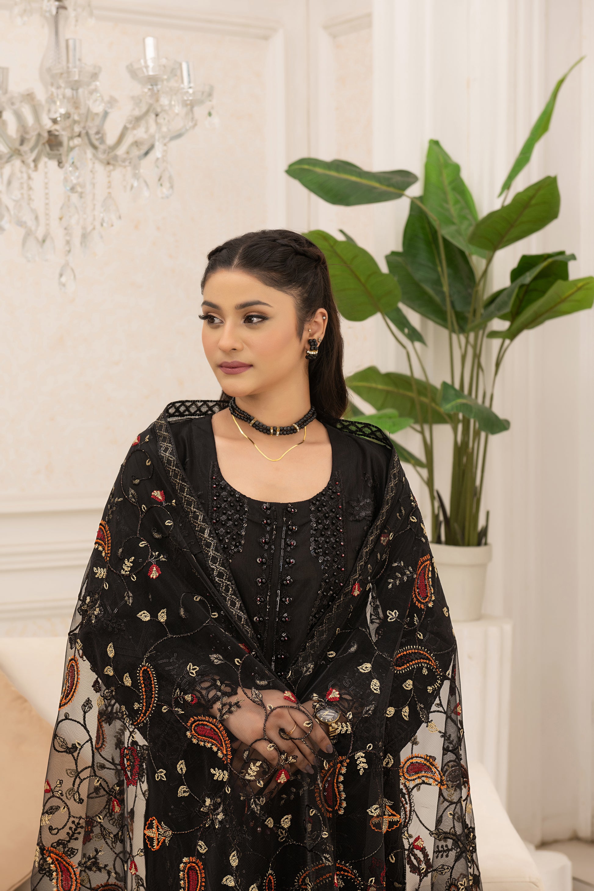 Net back With Embroidered border