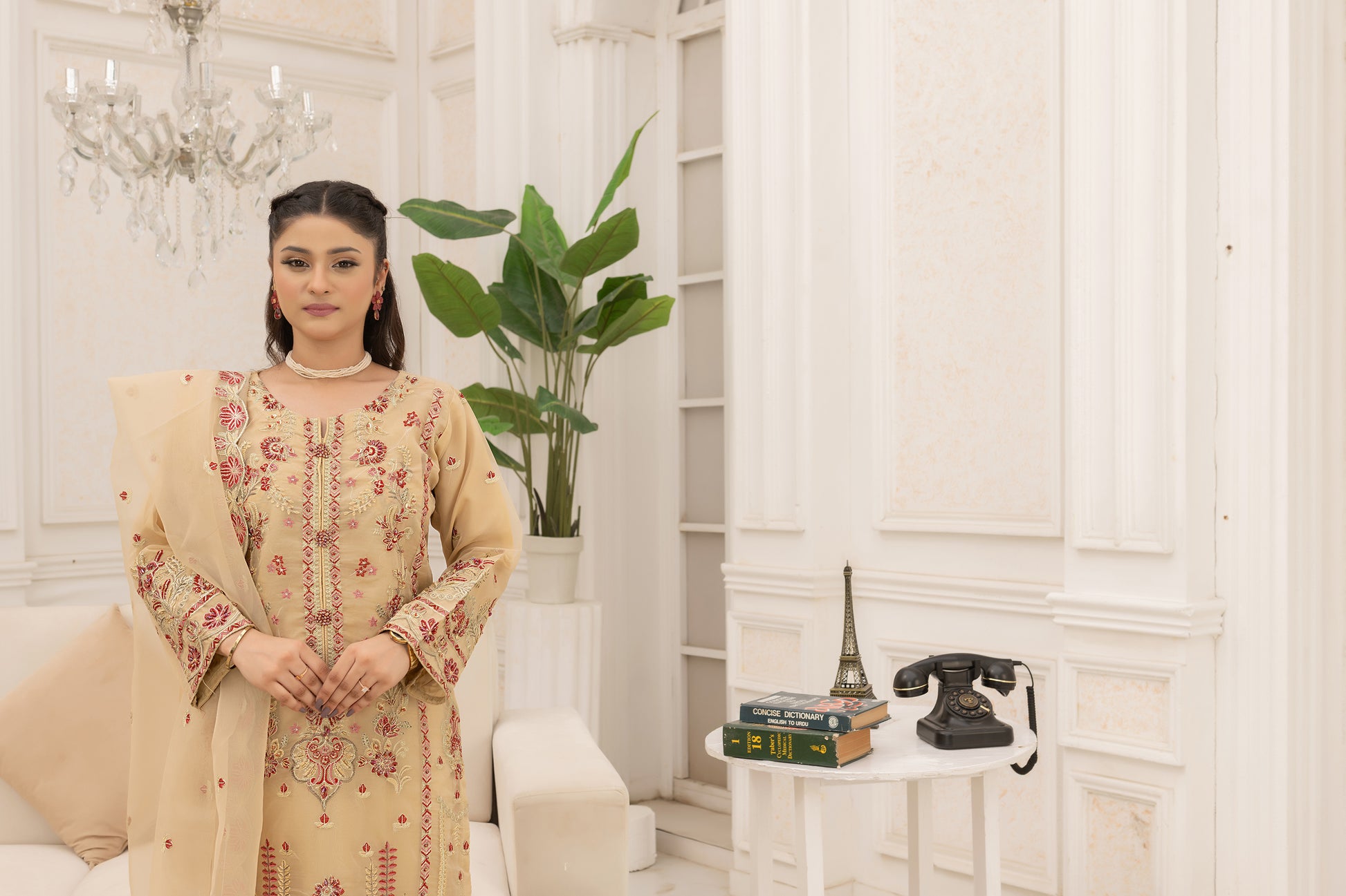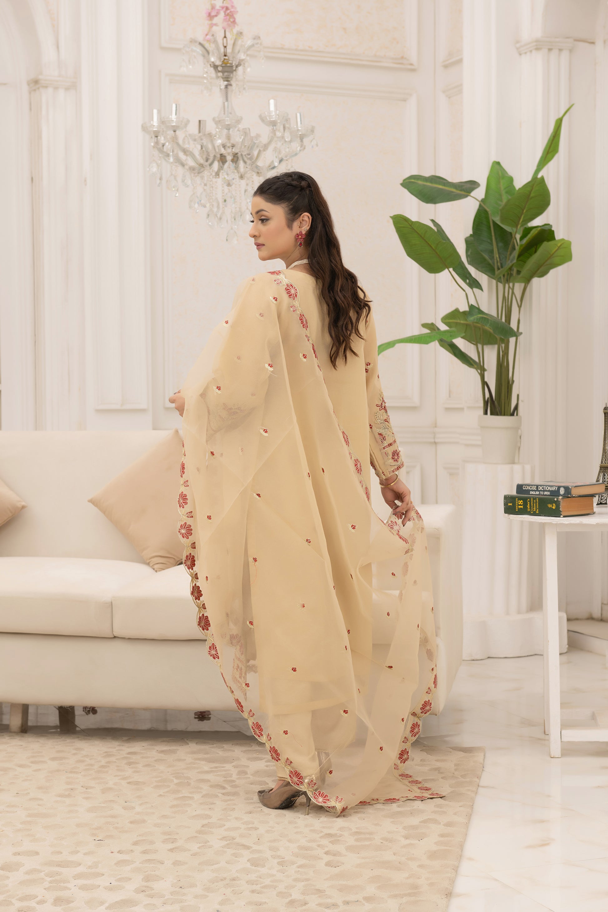 Organza Embroidered Hand Made front Organza Back With Embroidered Border Organza Embroidered sleeves