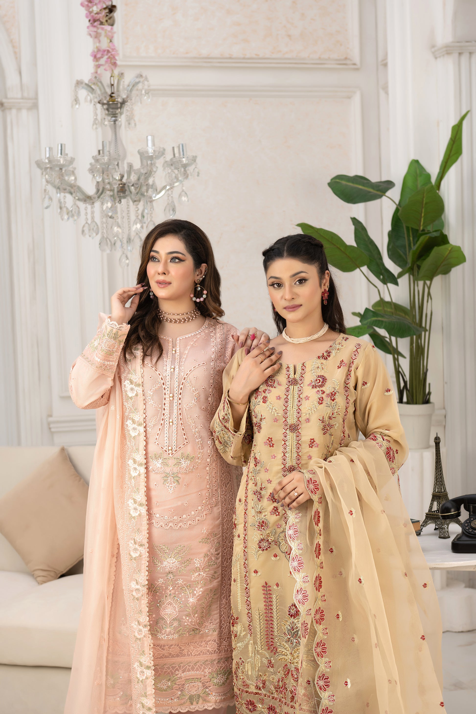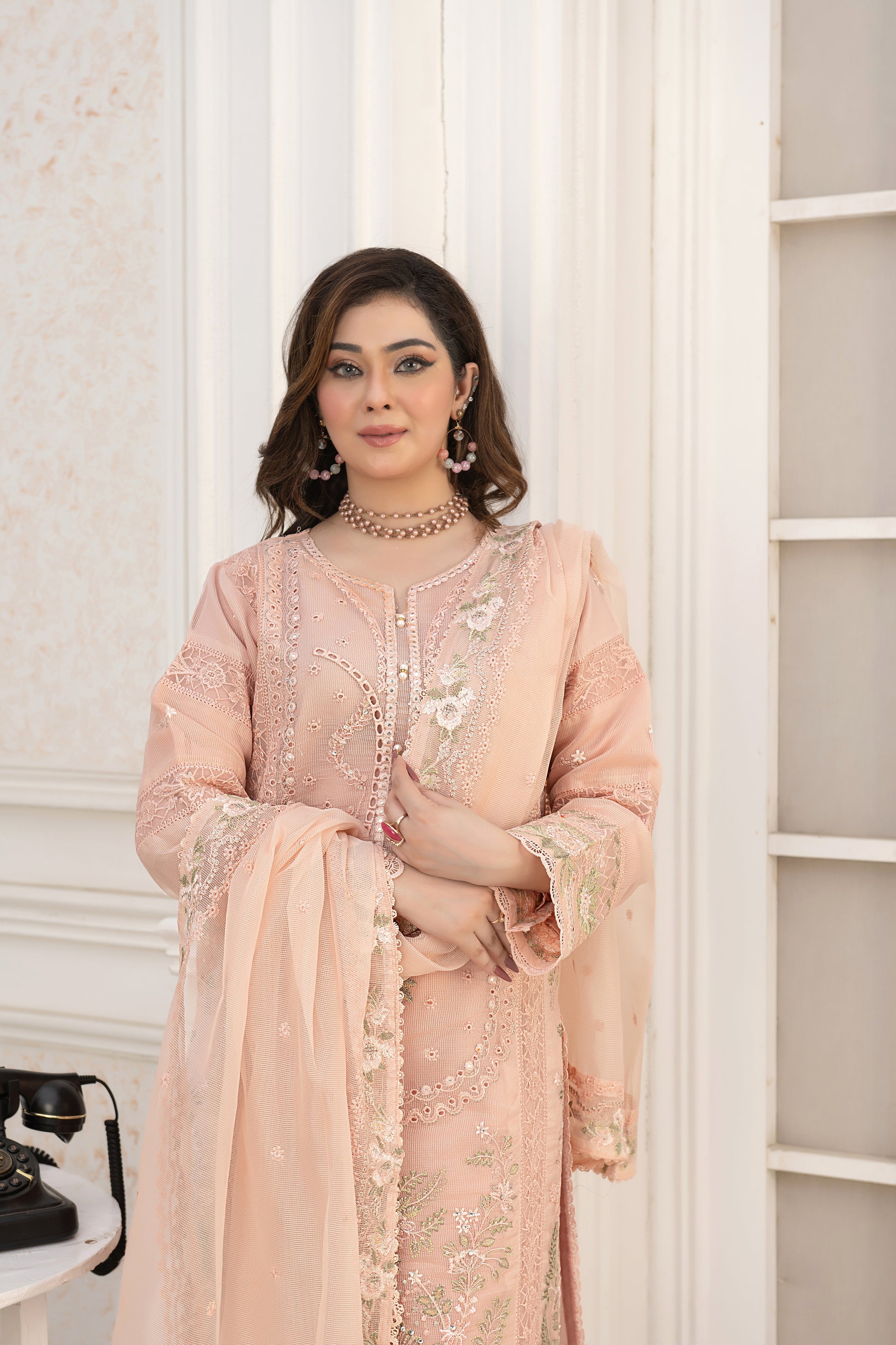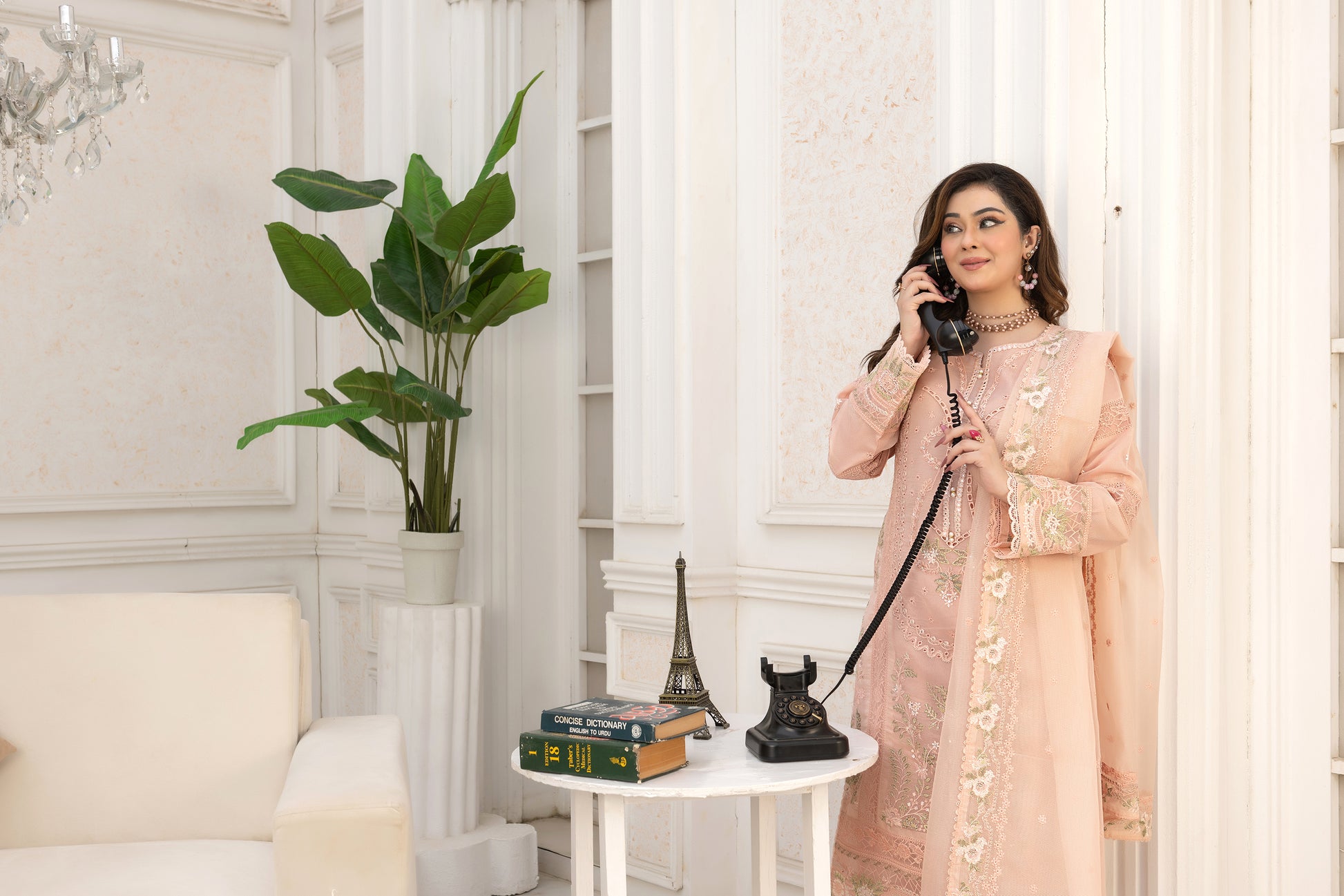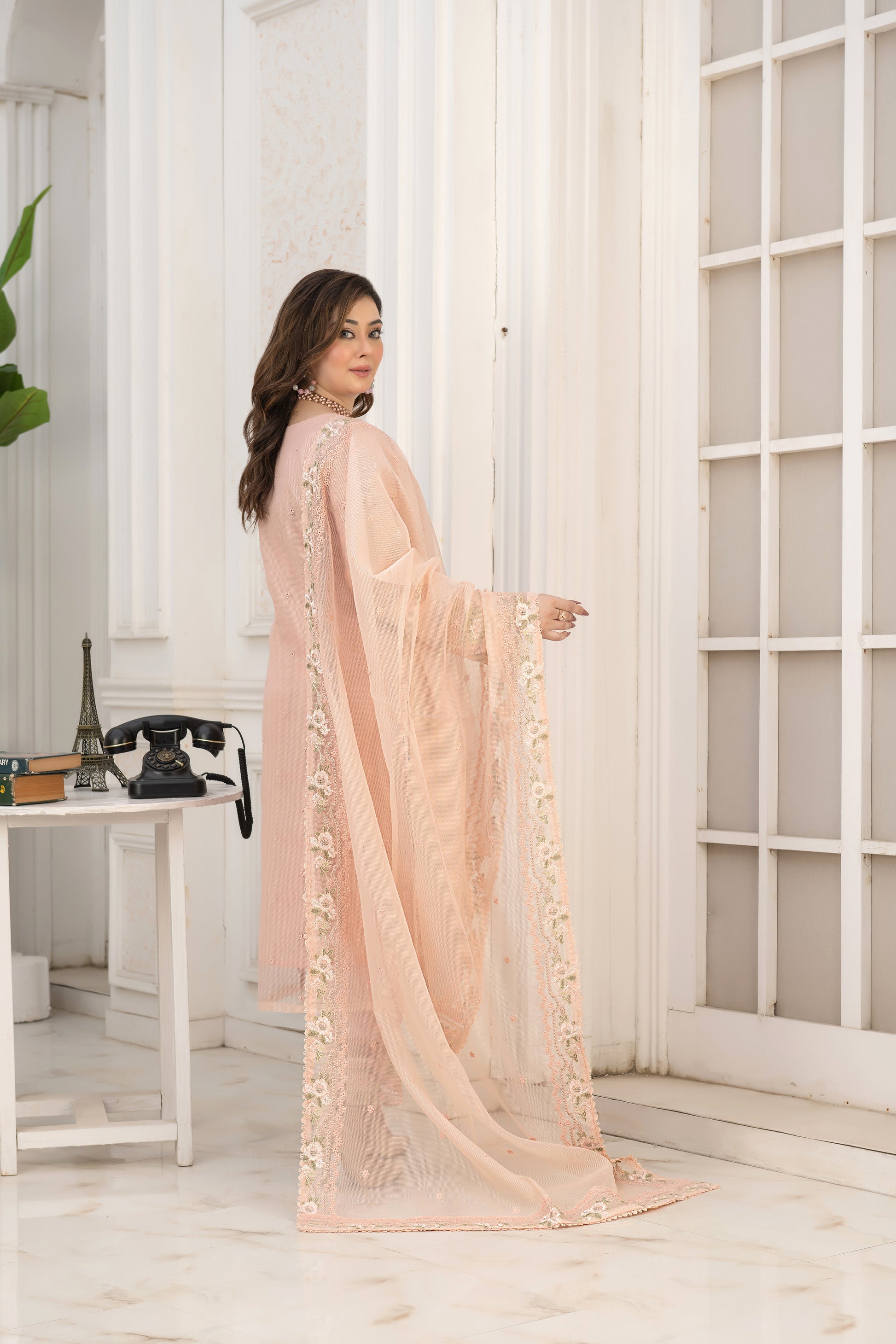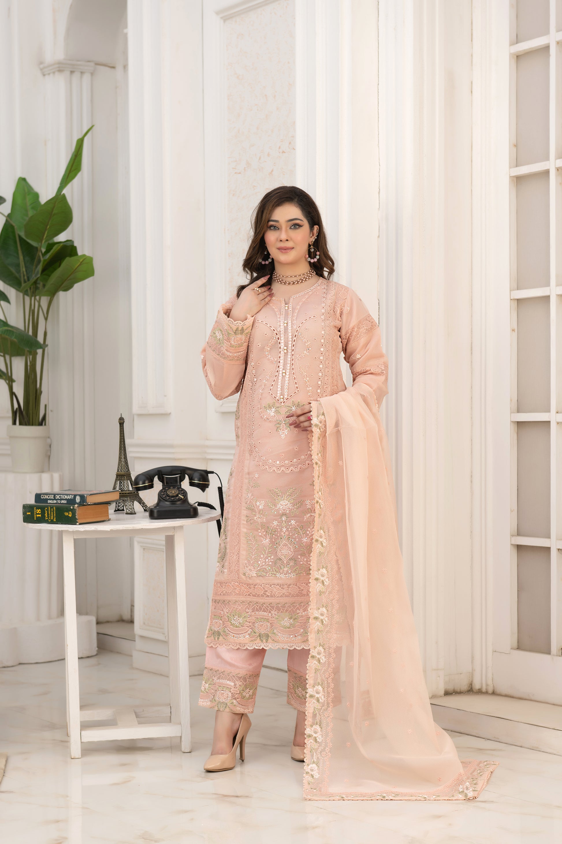 Set against a sophisticated grey base, this ensemble captures the perfect harmony of bold charm and graceful strength. Adorned with intricate threadwork and matte silver sequins, the embroidery adds a subtle yet striking texture-making it a true visual delight. The look is completed with a beautifully embroidered grey dupatta and a natching tonal trouser, offering a cohesive and elegant finish. A statement in refined