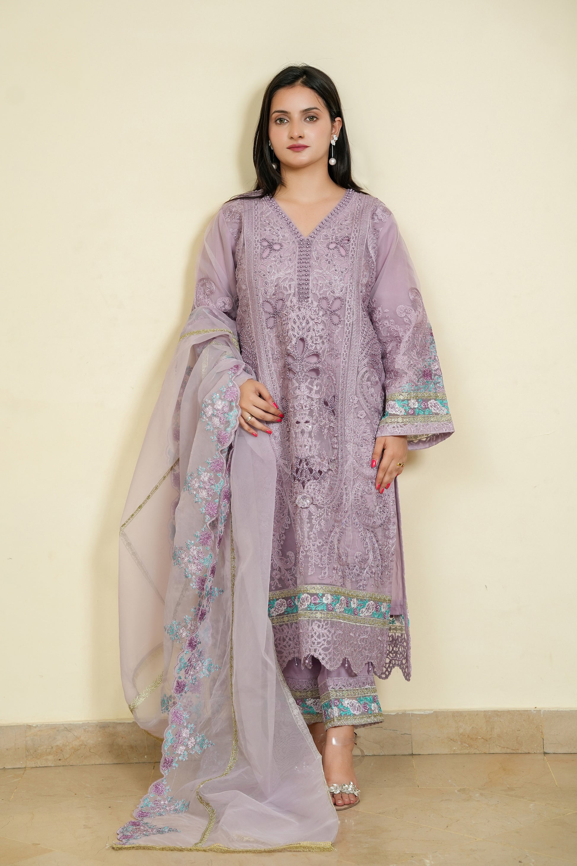 Organza dupatta with 2 sides embroidered, enhancing with lace