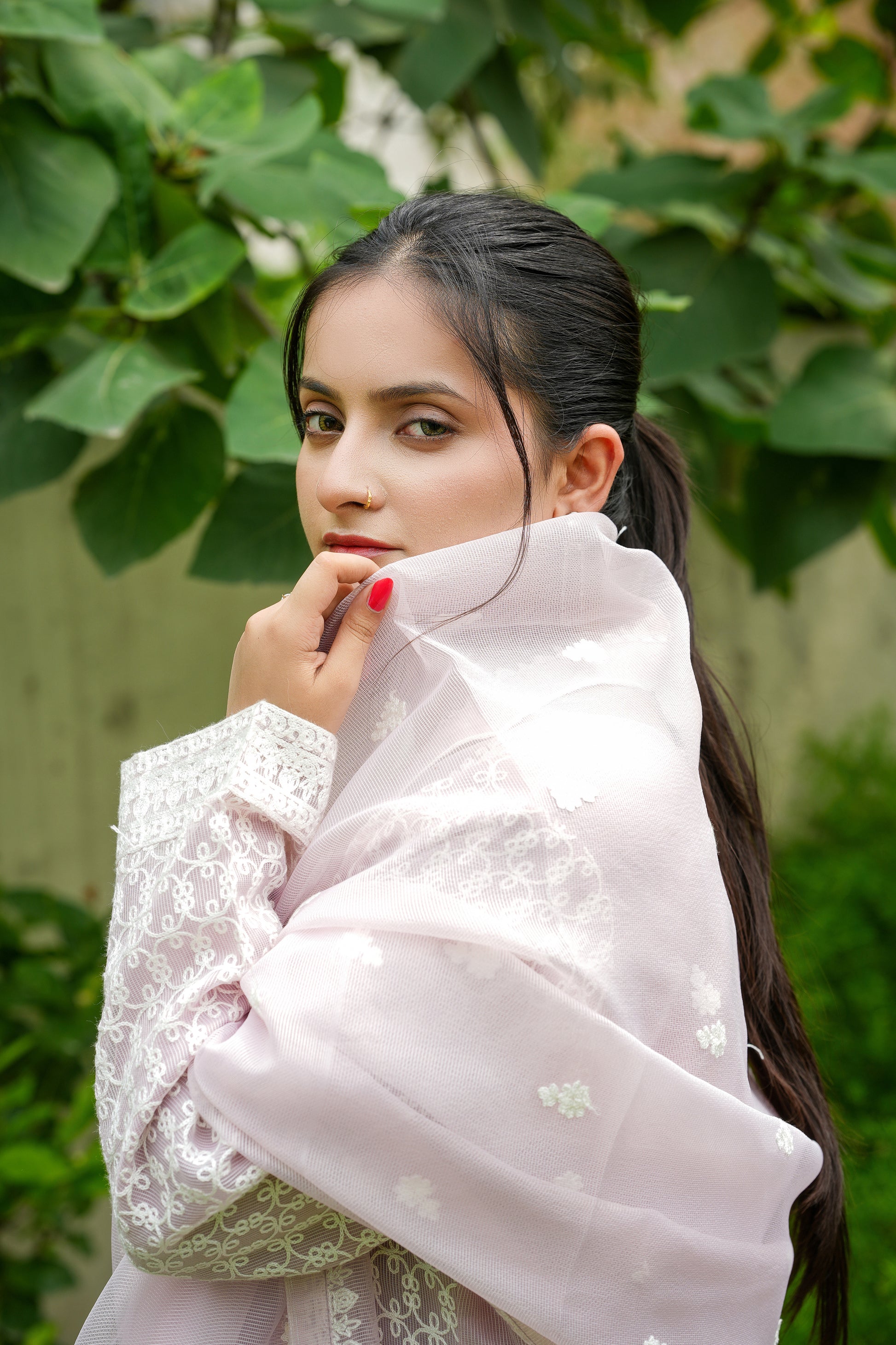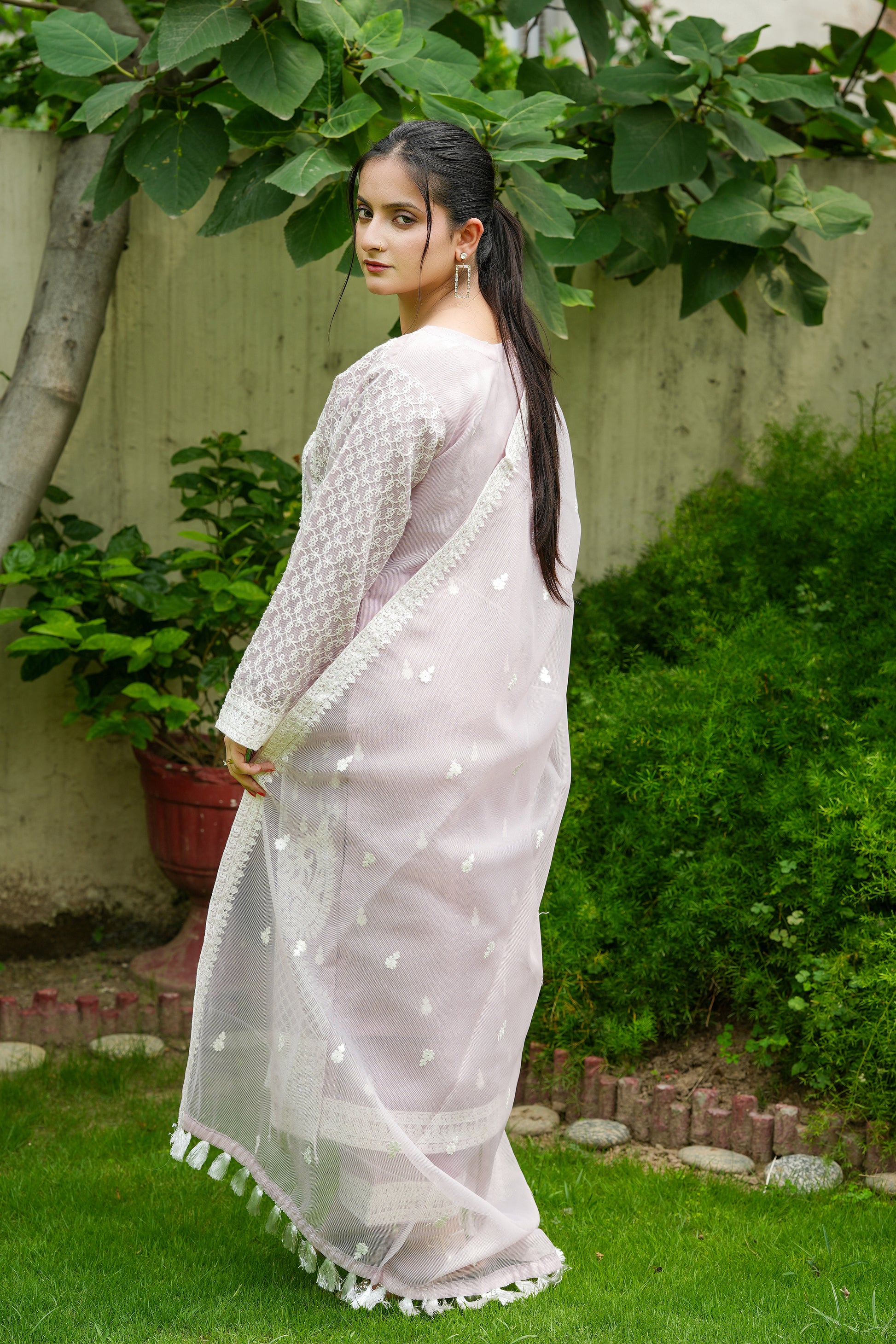 Khaadi net dupatta with two side embroidered and two side tassels