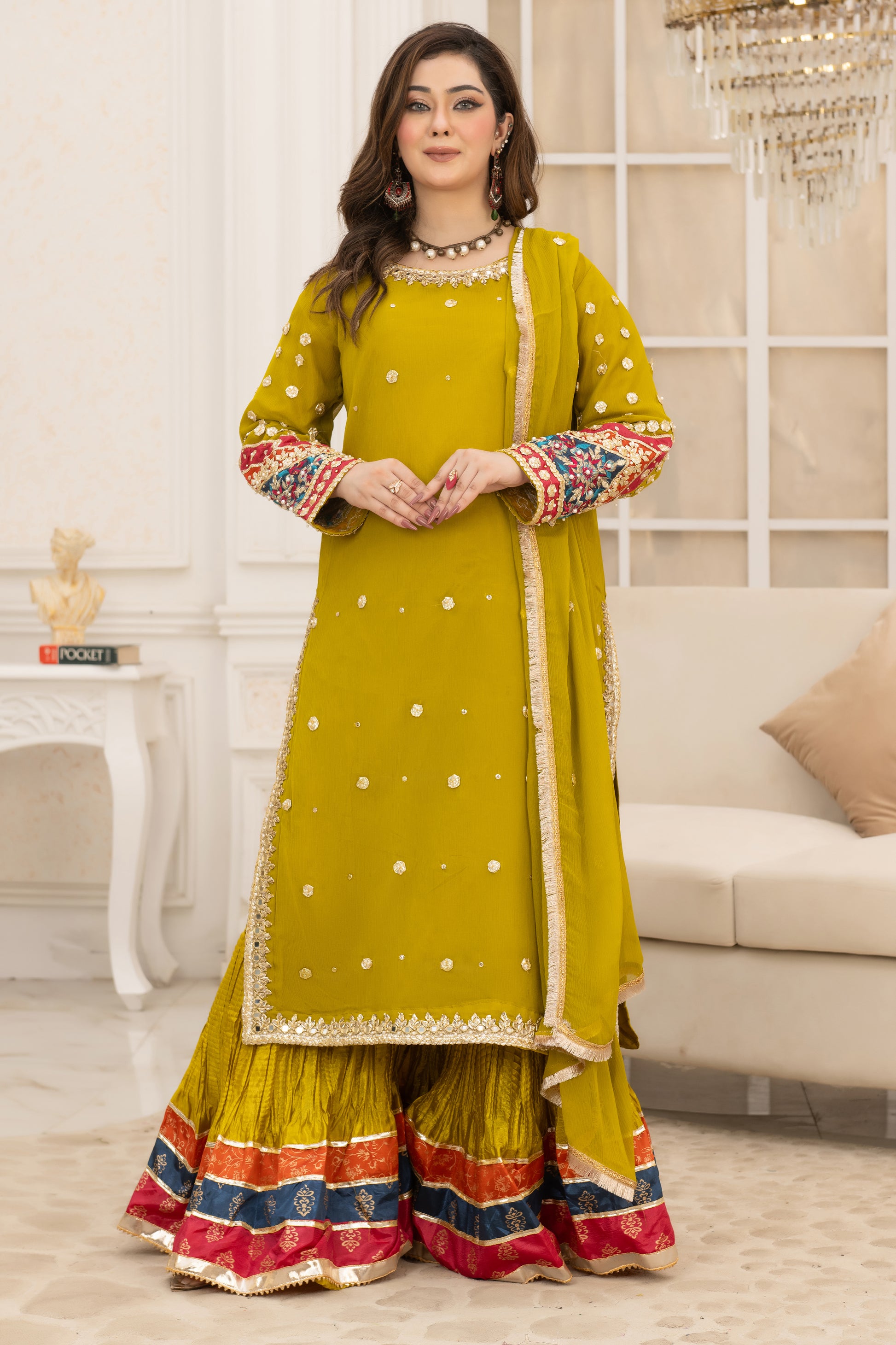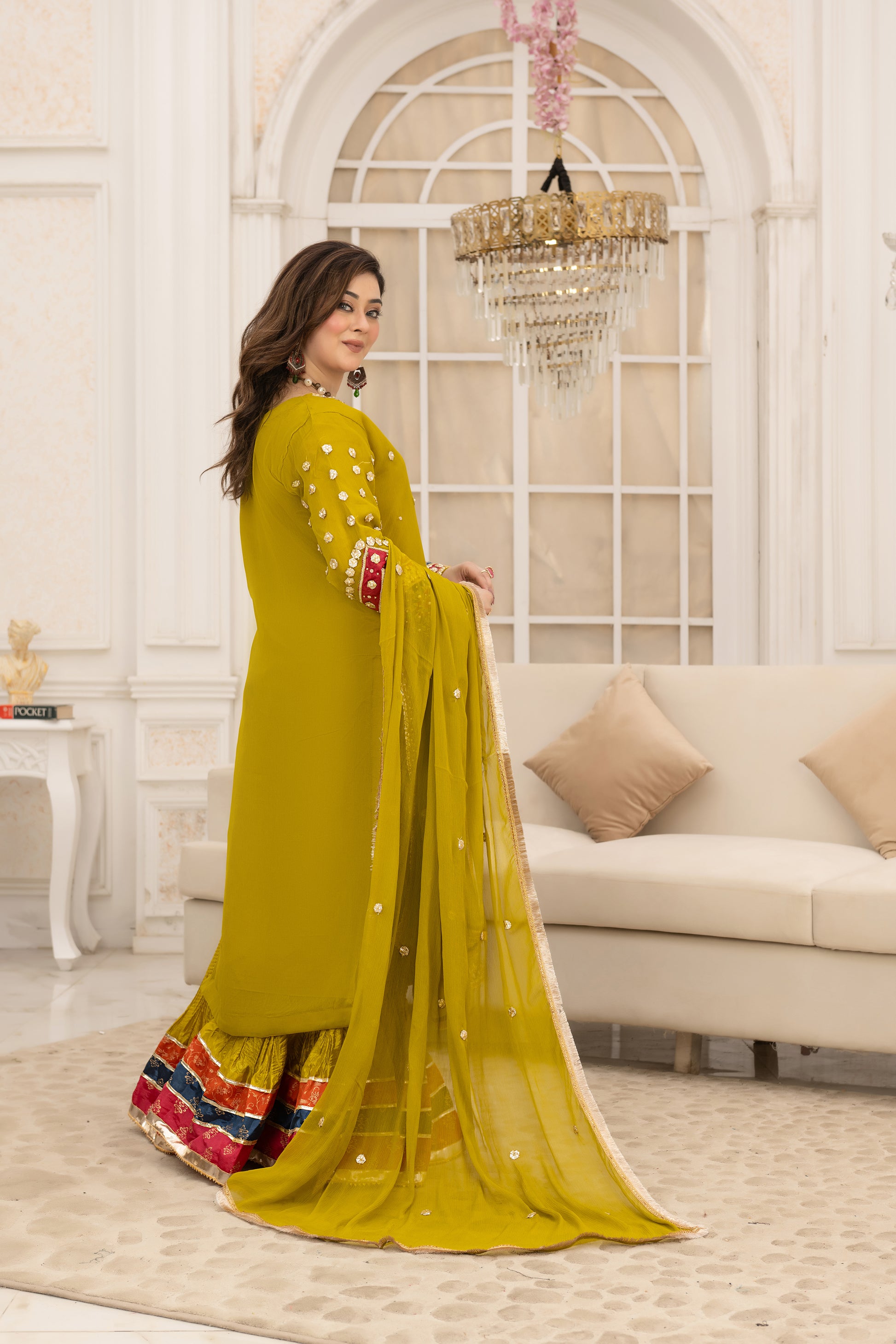 Katan Silk Crushed Sharara With Bottom Multi Katan Patti and Gota Lace