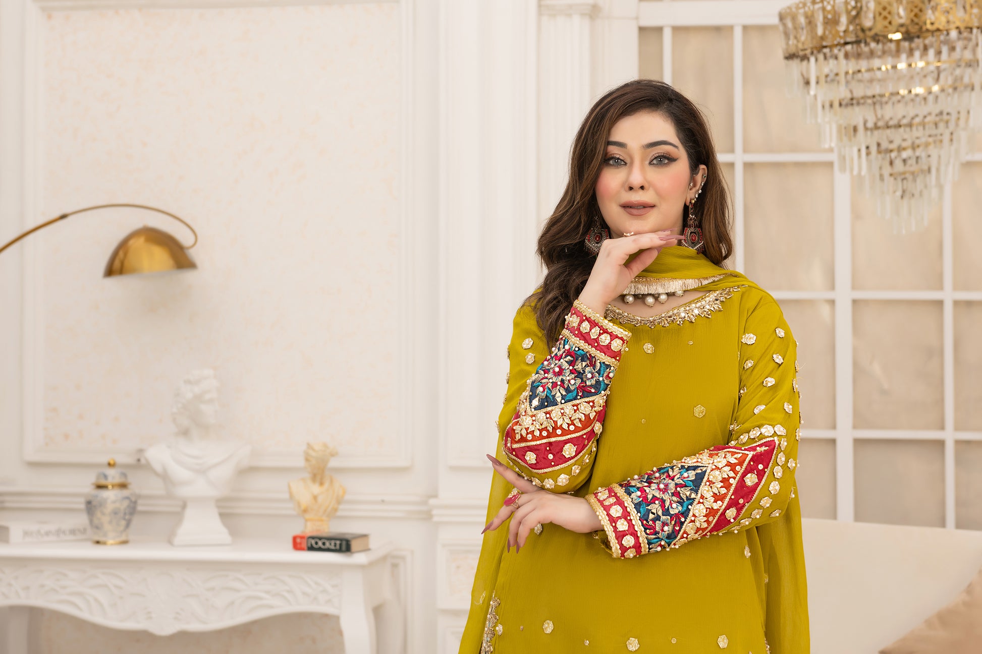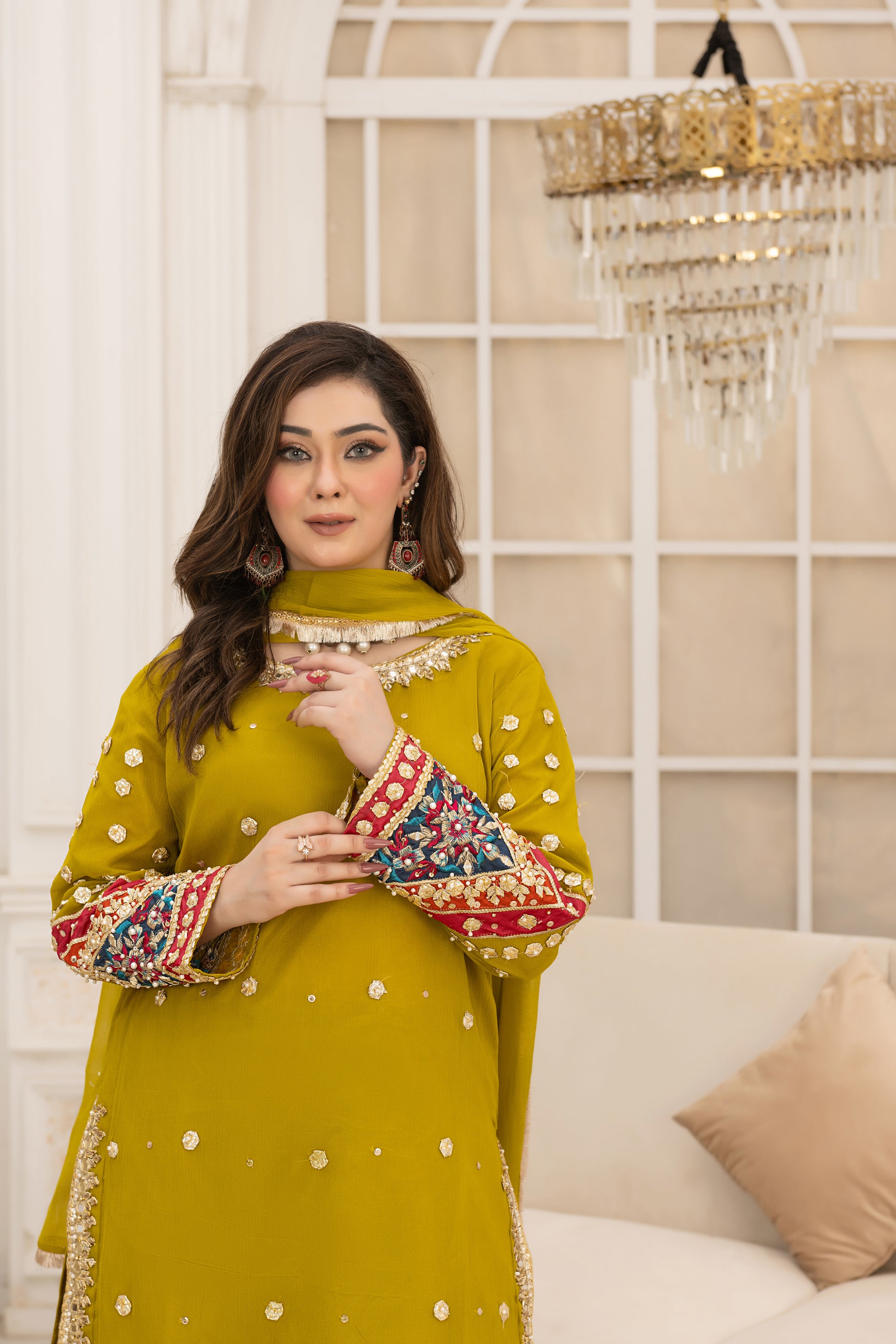 Chiffon Embroidered Sleeves With Gota Pati and Mirror Work