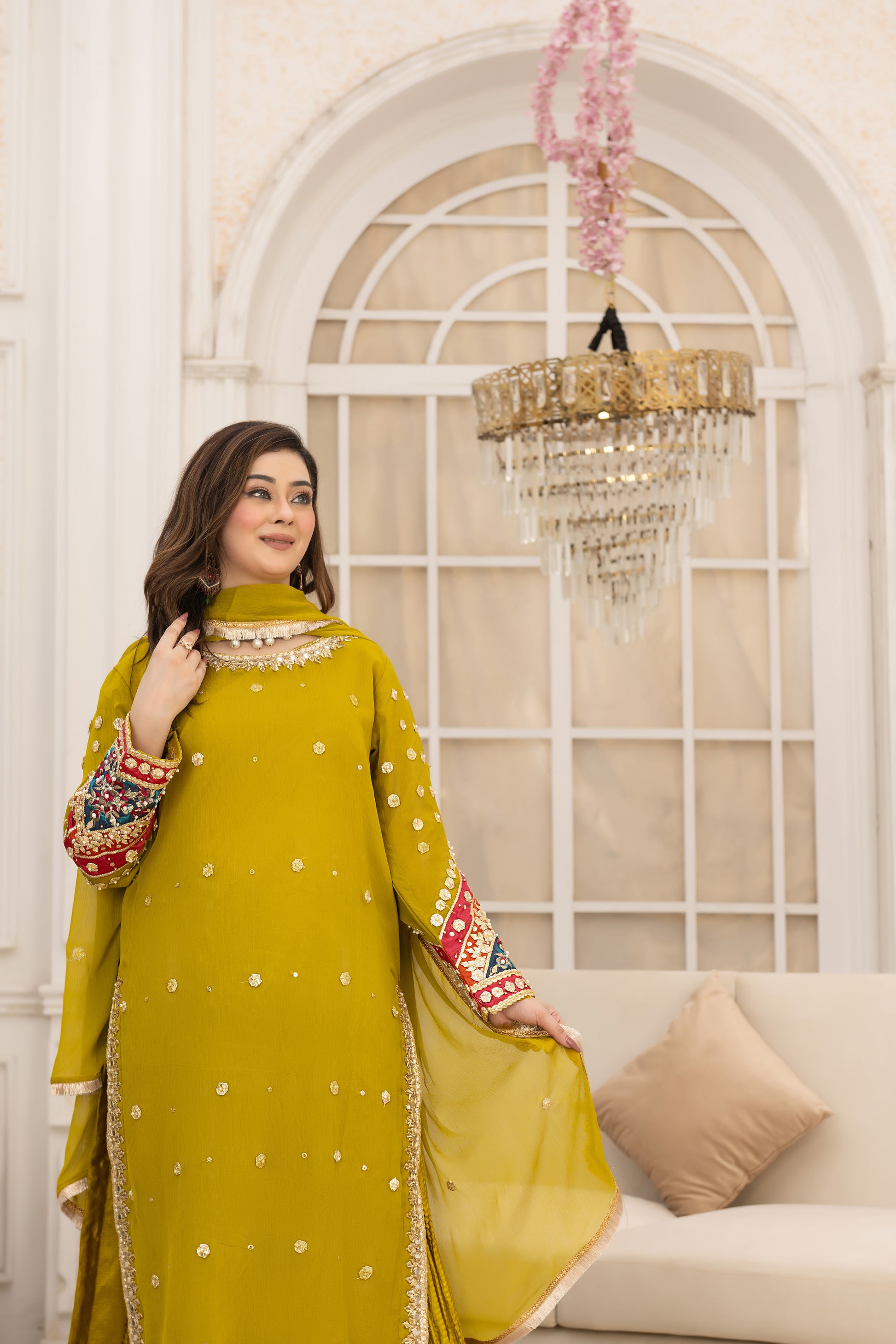 Chiffon Shirt With Hand Made Zardozi, Gota Pati and Mirror Work