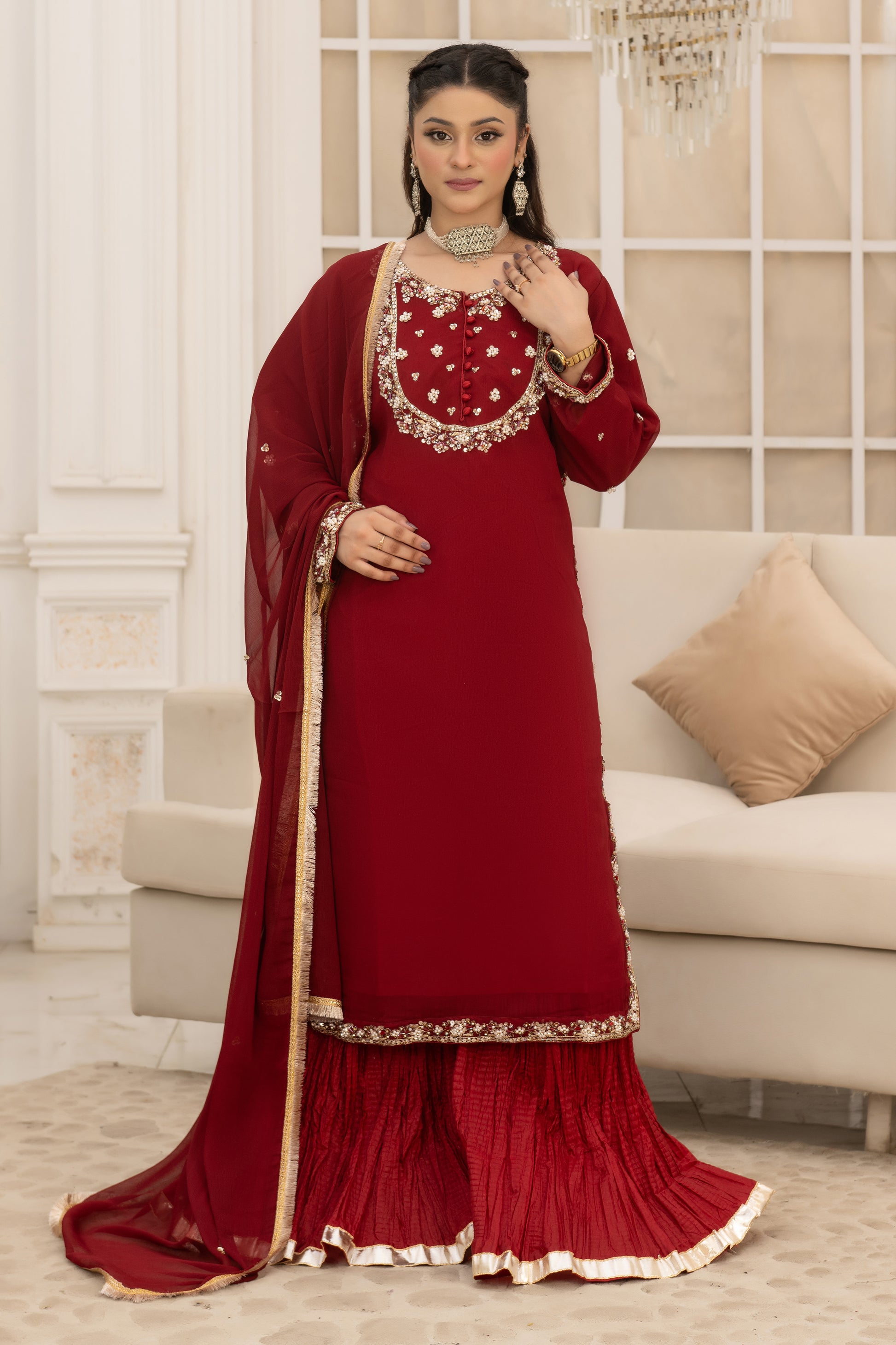 Chiffon Shirt With Hand Made Zardozi work