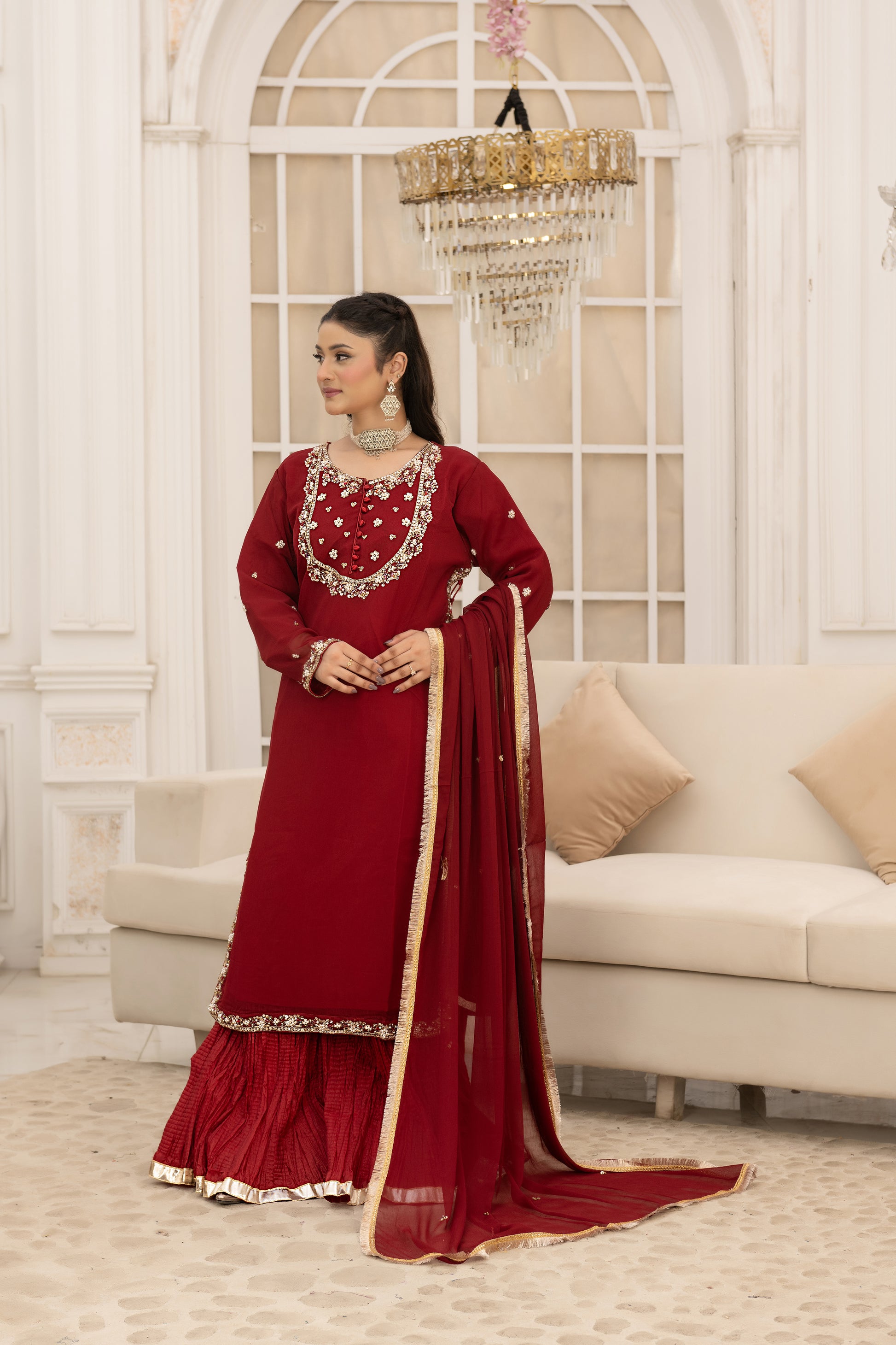 Katan Silk Crushed Sharara With Bottom