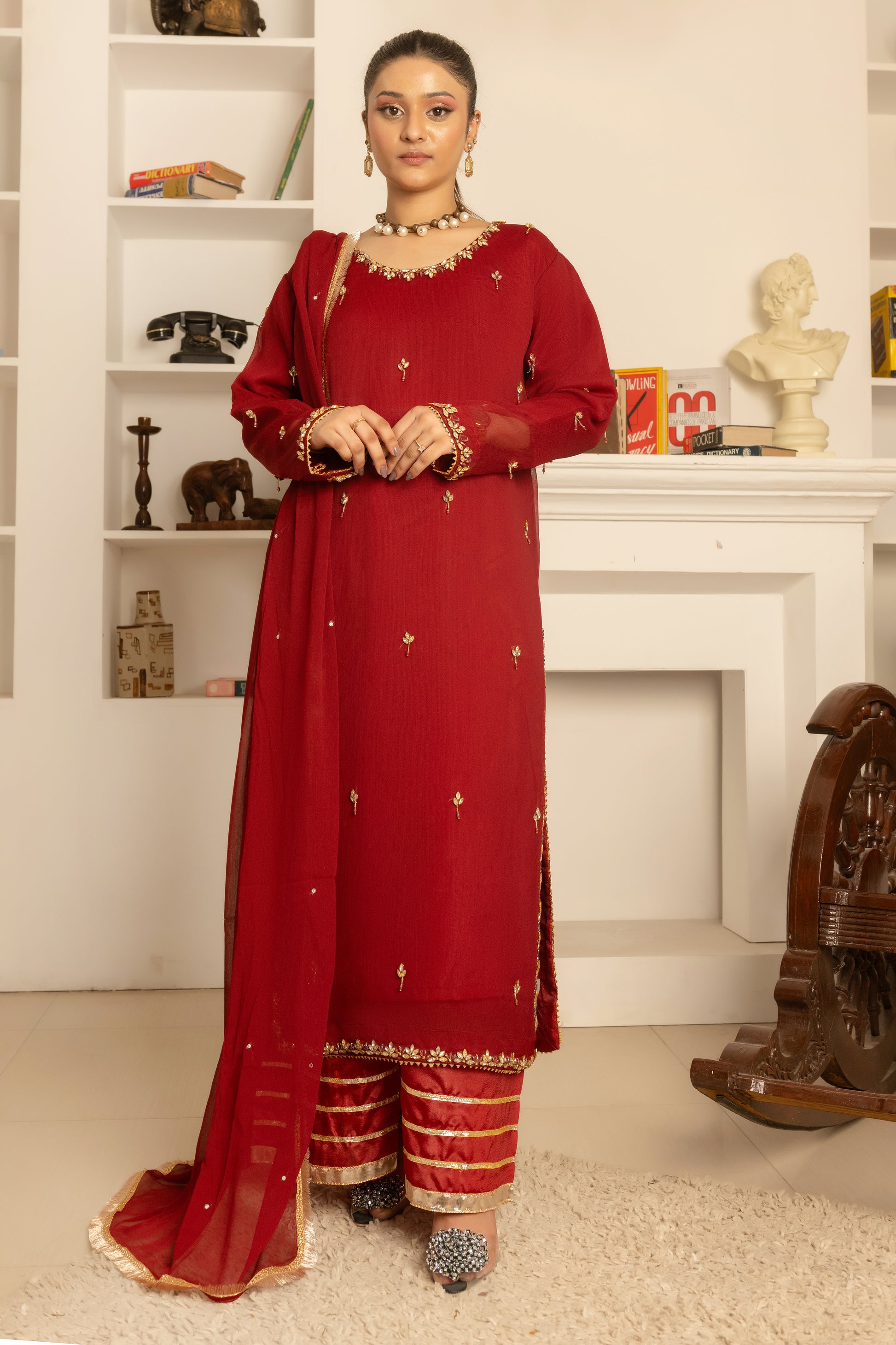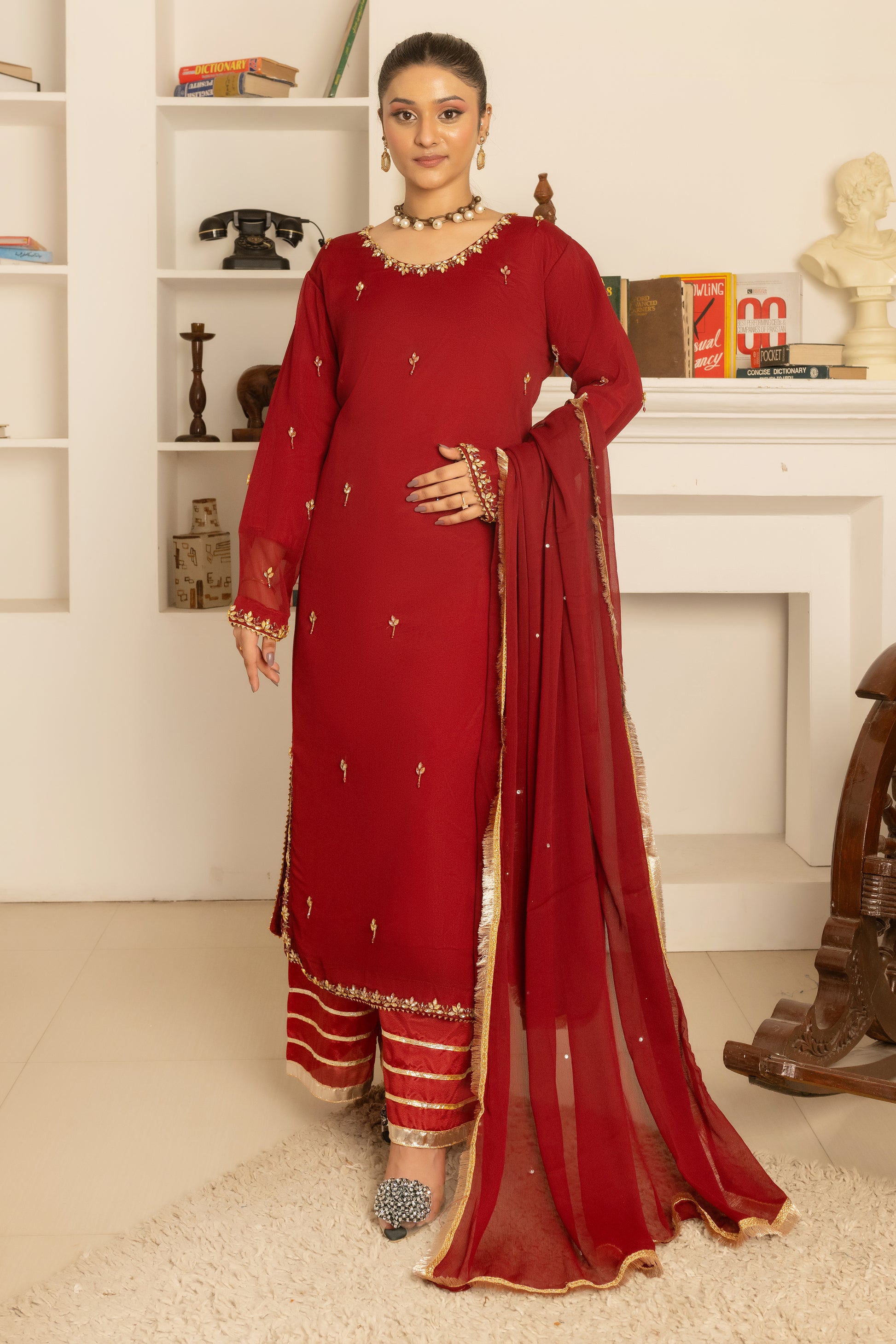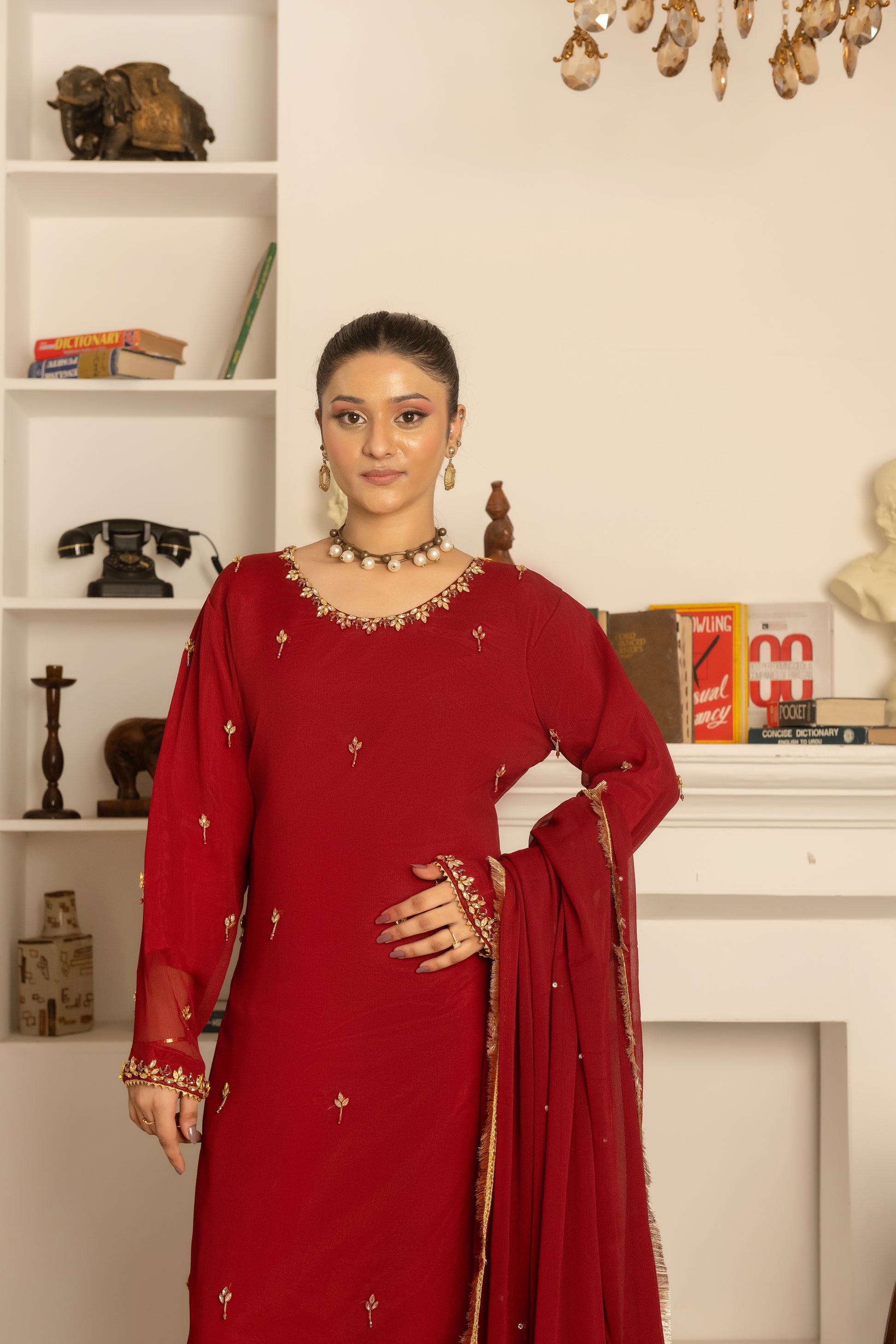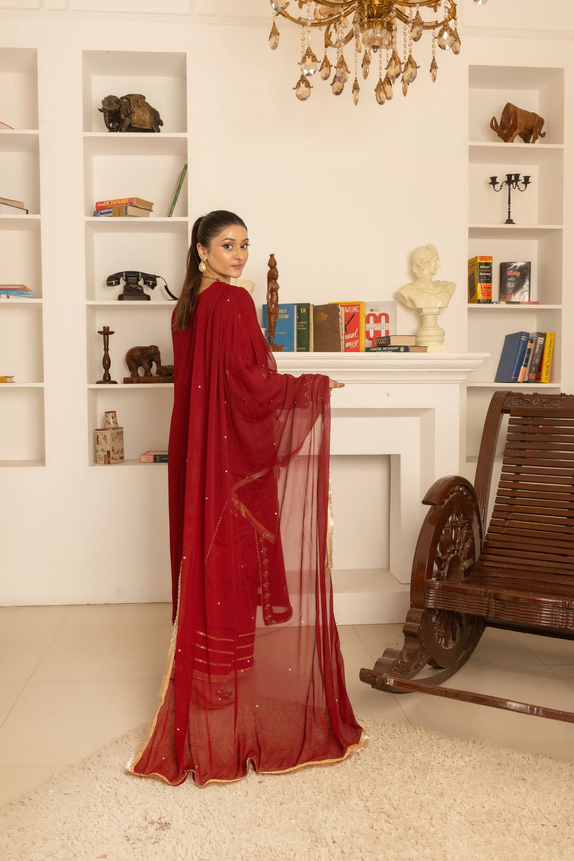 Chiffon Dupatta Woth Four Side Kiran Lace and Diamond Spray