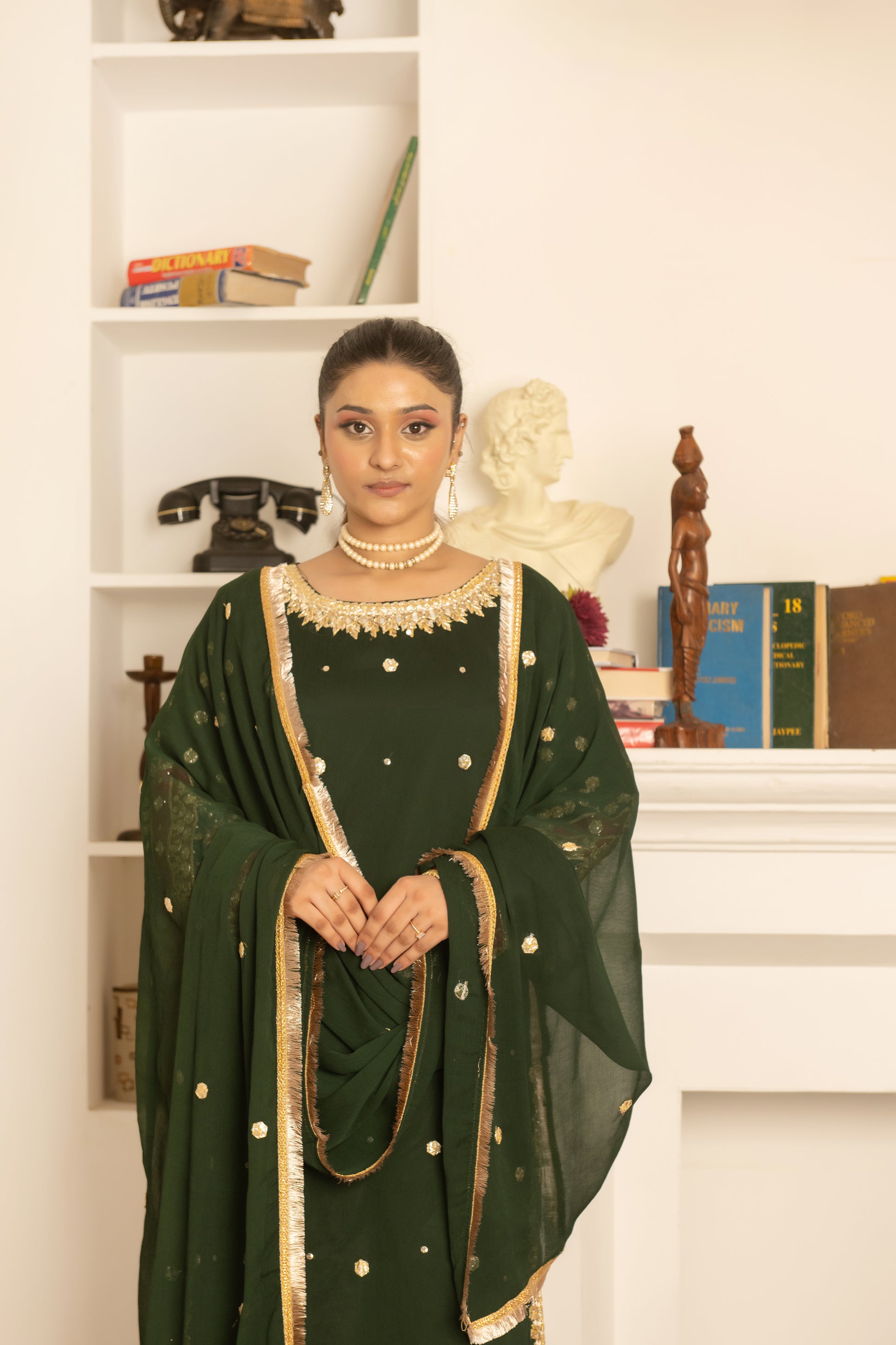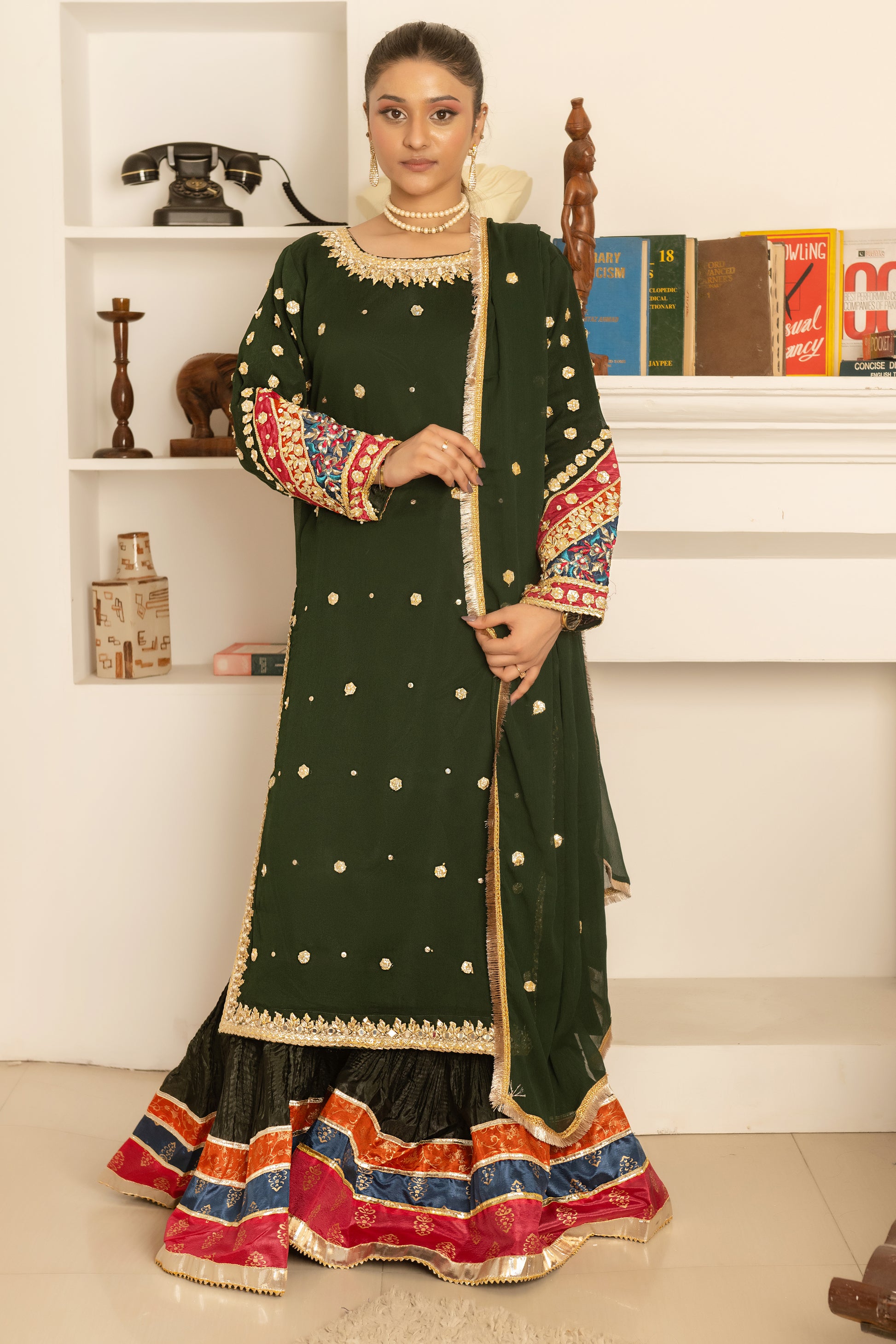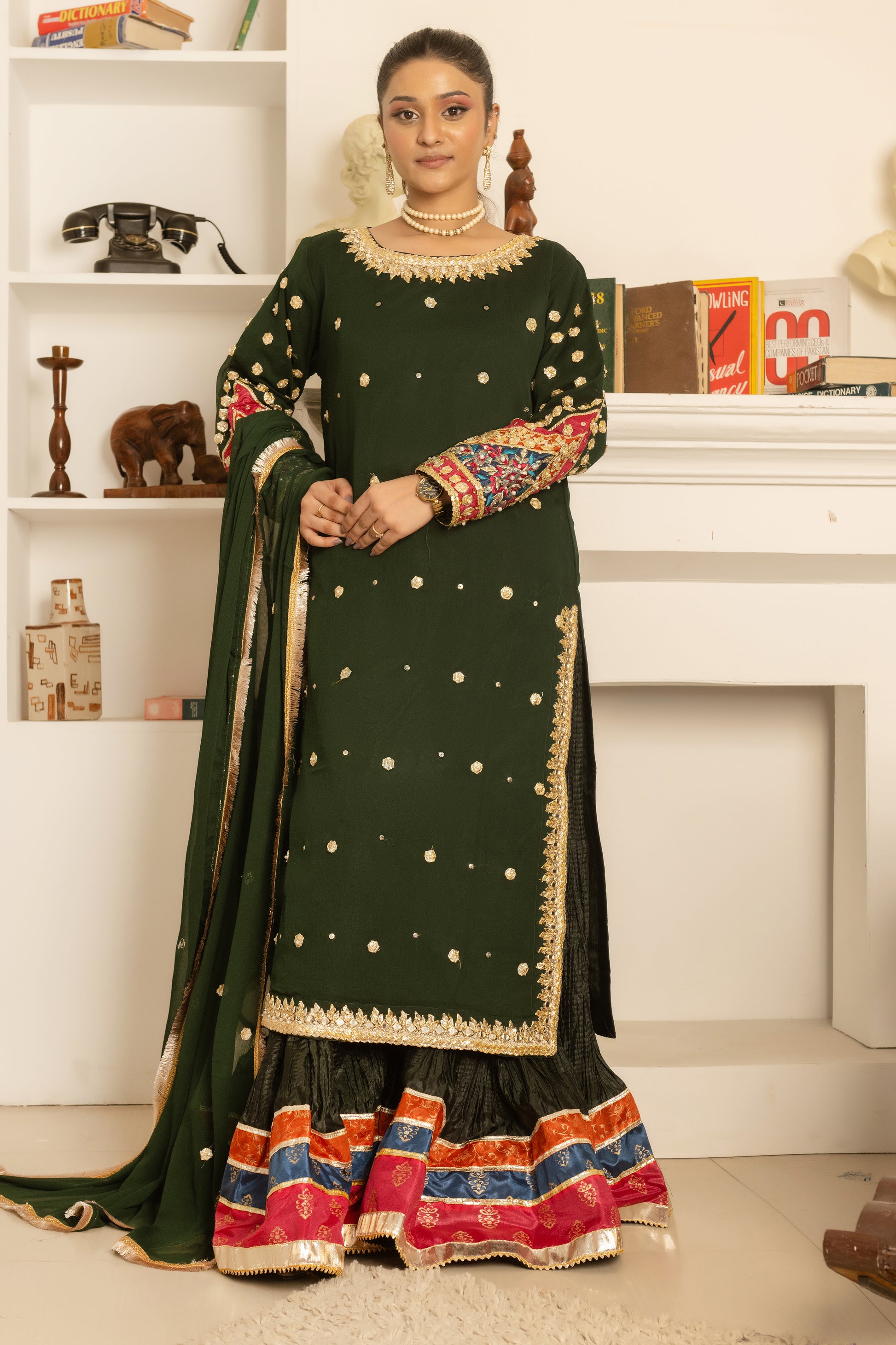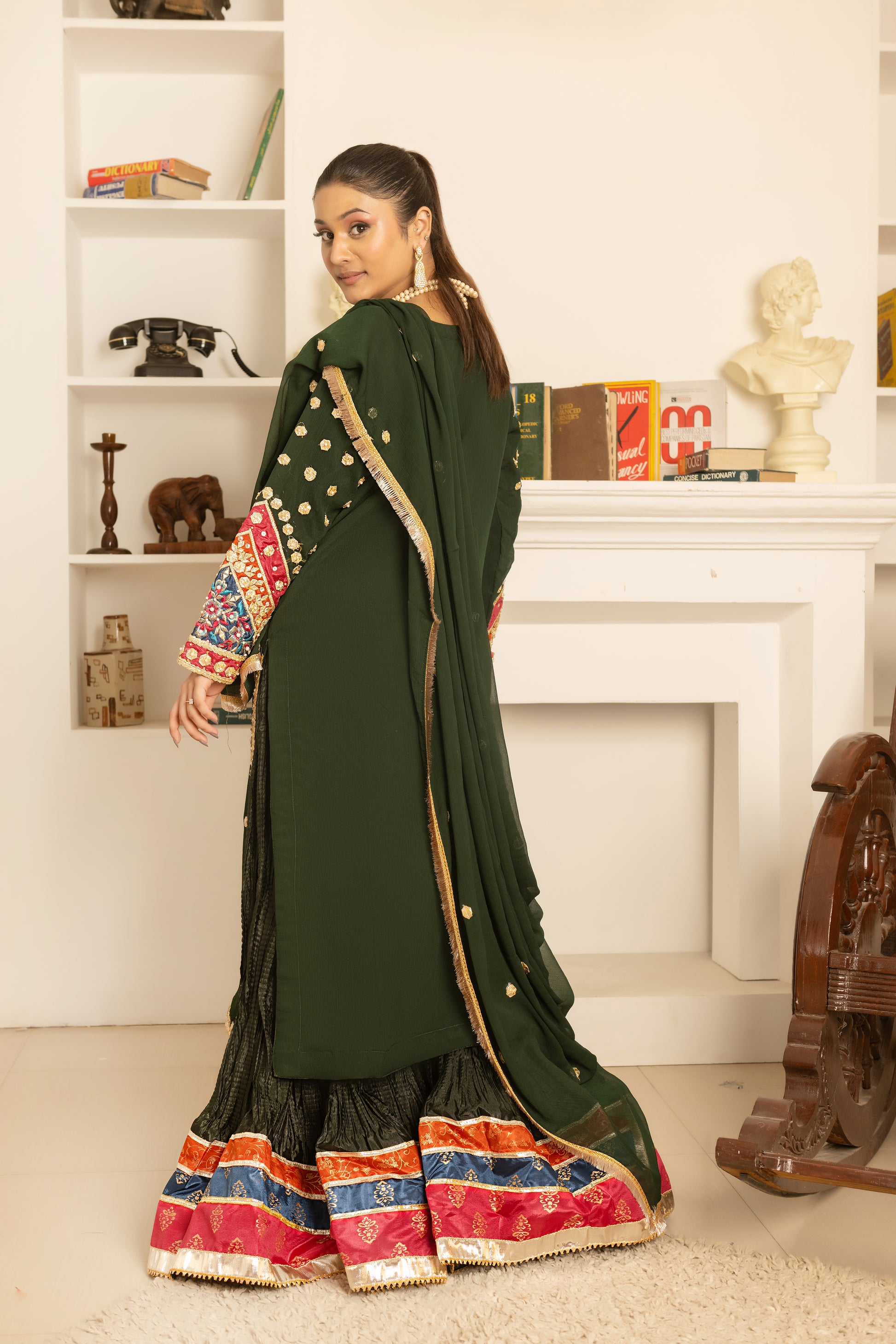 Katan Silk Crushed Sharara With Bottom Multi Katan Patti and Gota Lace