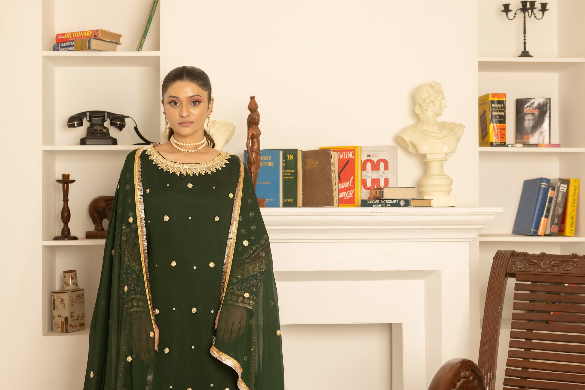 Chiffon Shirt With Hand Made Zardozi, Gota Pati and Mirror Work