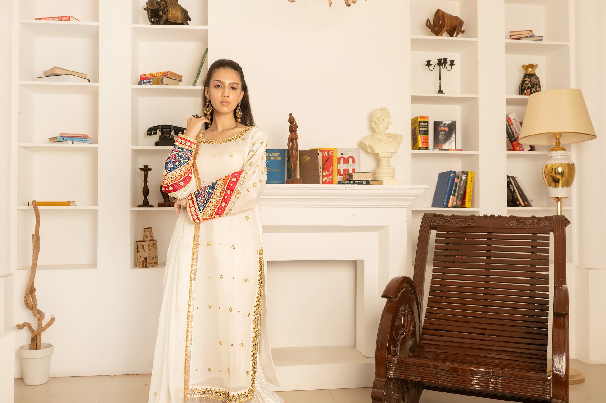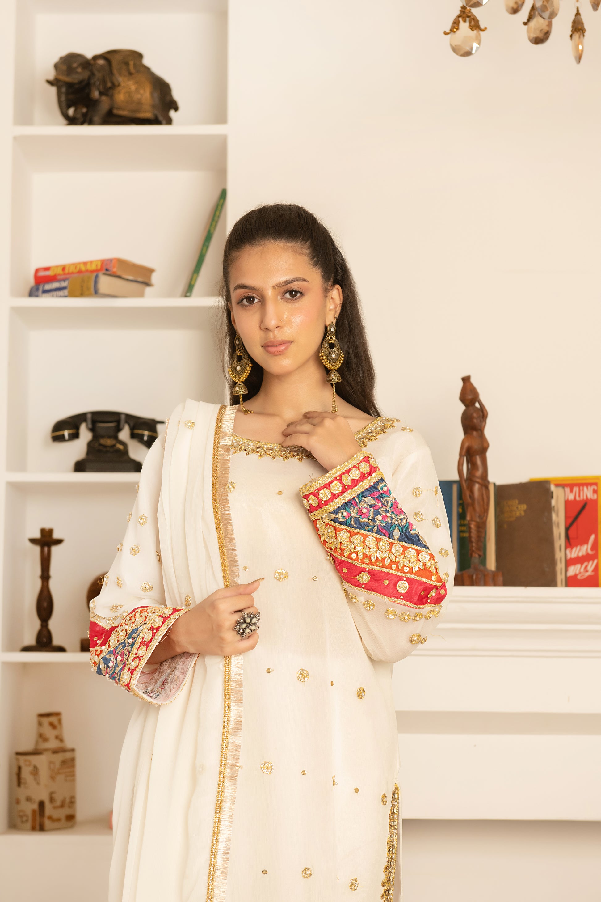 Chiffon Embroidered Sleeves With Gota Pati and Mirror Work