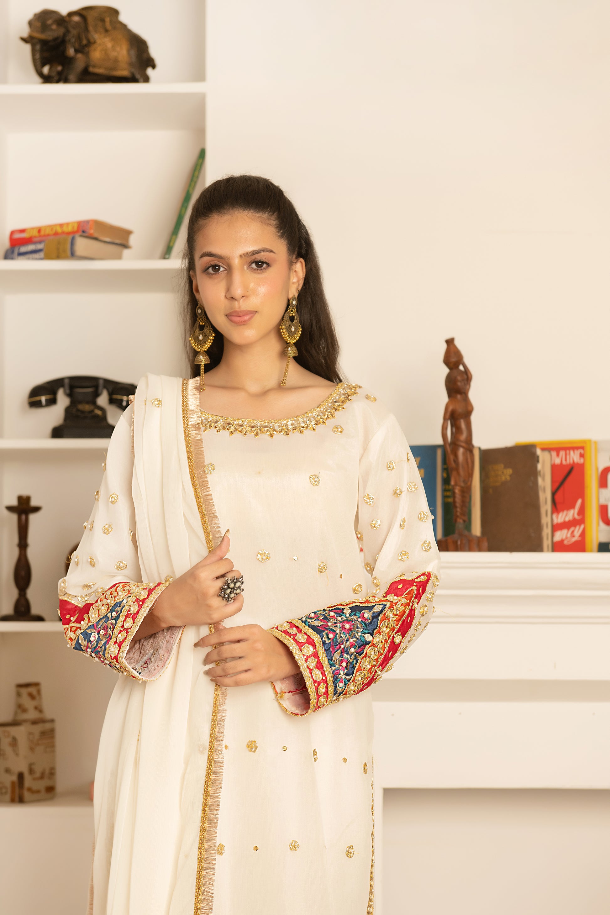 Chiffon Shirt With Hand Made Zardozi, Gota Pati and Mirror Work