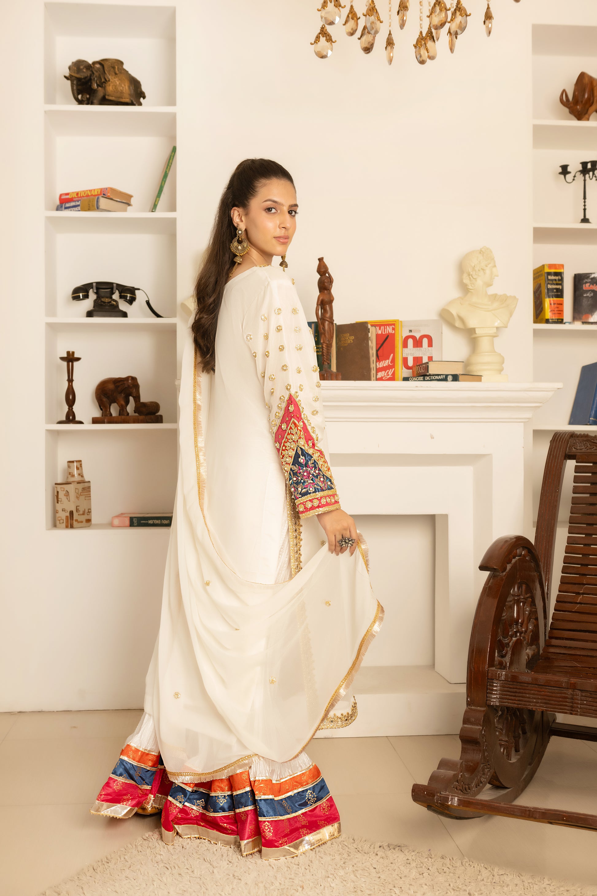 Katan Silk Crushed Sharara With Bottom Multi Katan Patti and Gota Lace